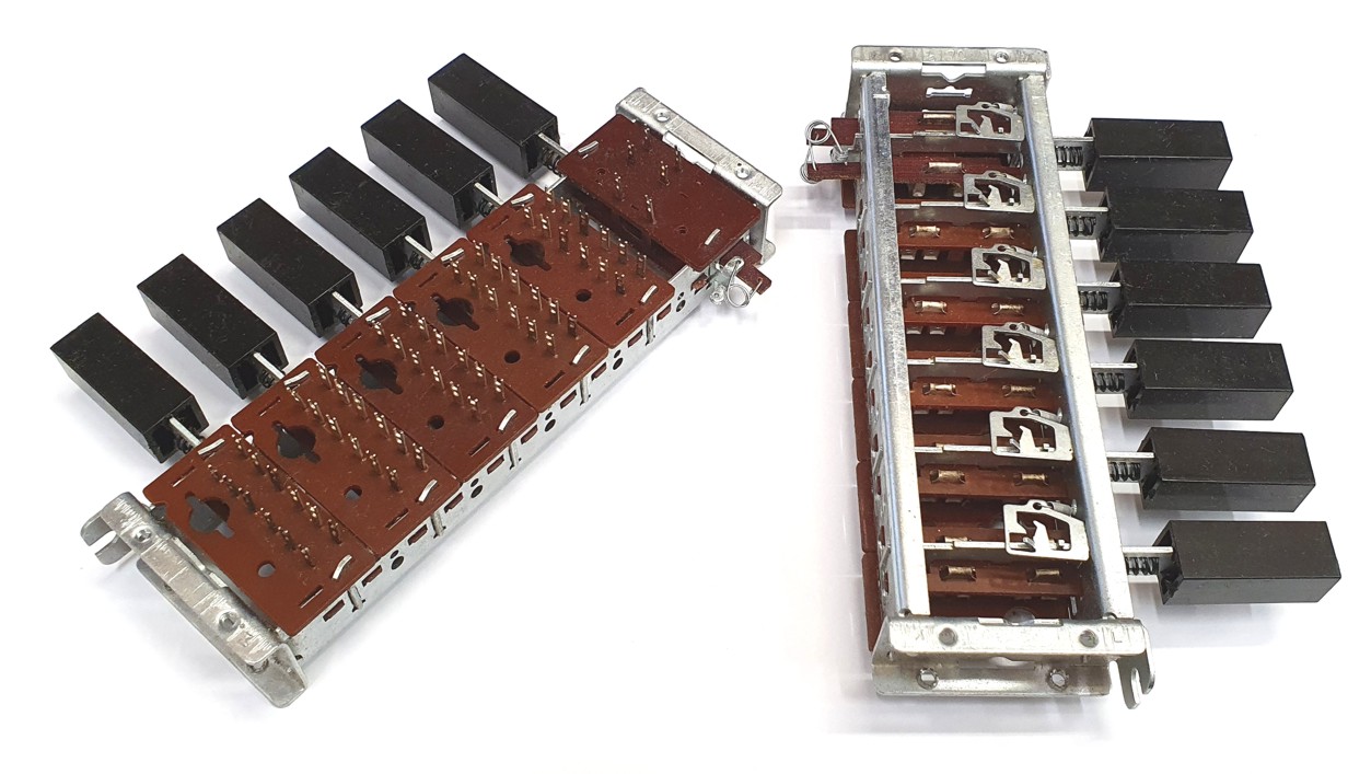 Plošný spoj osazený 12ks tranzistorů BD244C a 12ks relé Finder 40.52 24Vss 2x8A 2x přepínací kontakt. Deska nebyla nikdy zapojena. Skladem 2ks desek.
