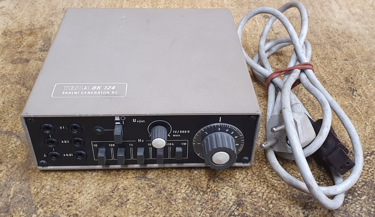 Školní generátor BK124 včetně napájecího kabelu. Bez dalšího příslušenství. Po zapnutí svítí, další funkčnost či seřízení třeba ověřit.
